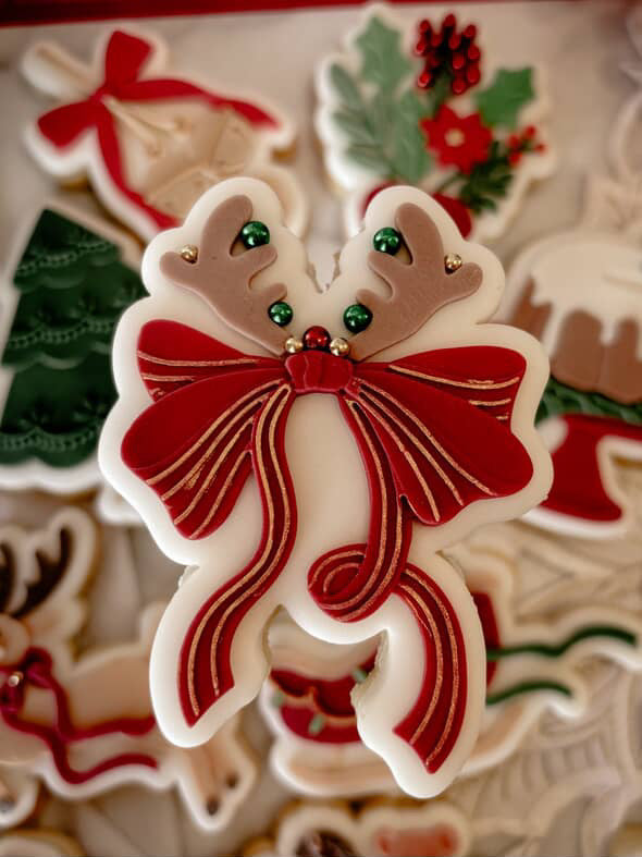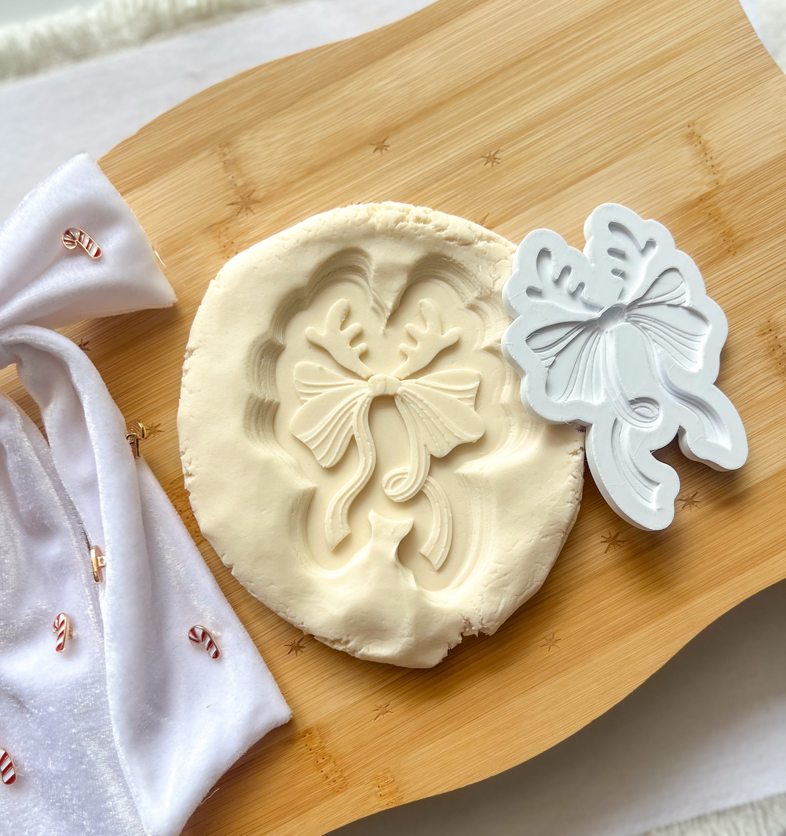 Bow with reindeer ears debosser and cutter