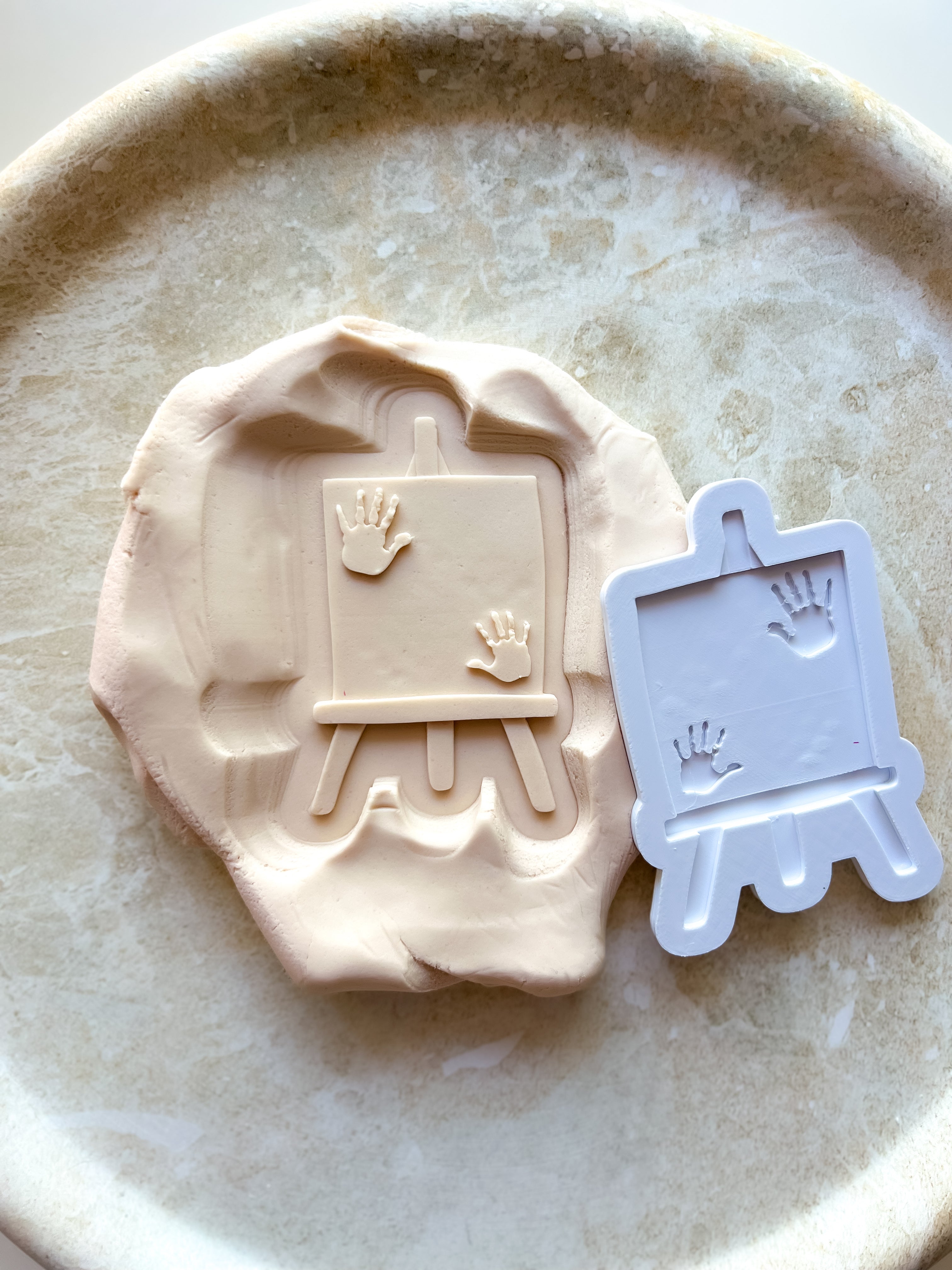 Easel with handprints debosser and cutter