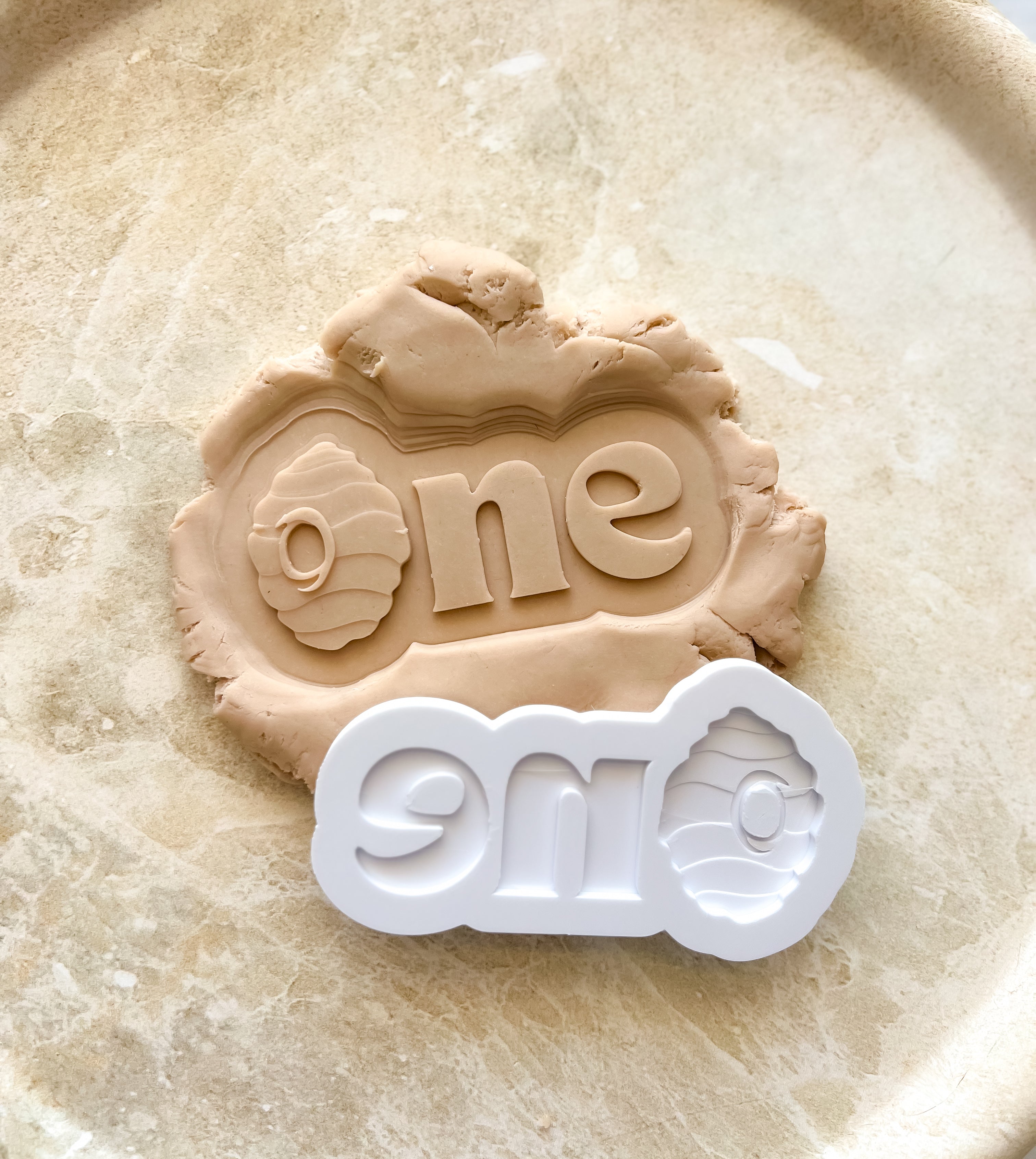 One word with bee hive debosser and cutter