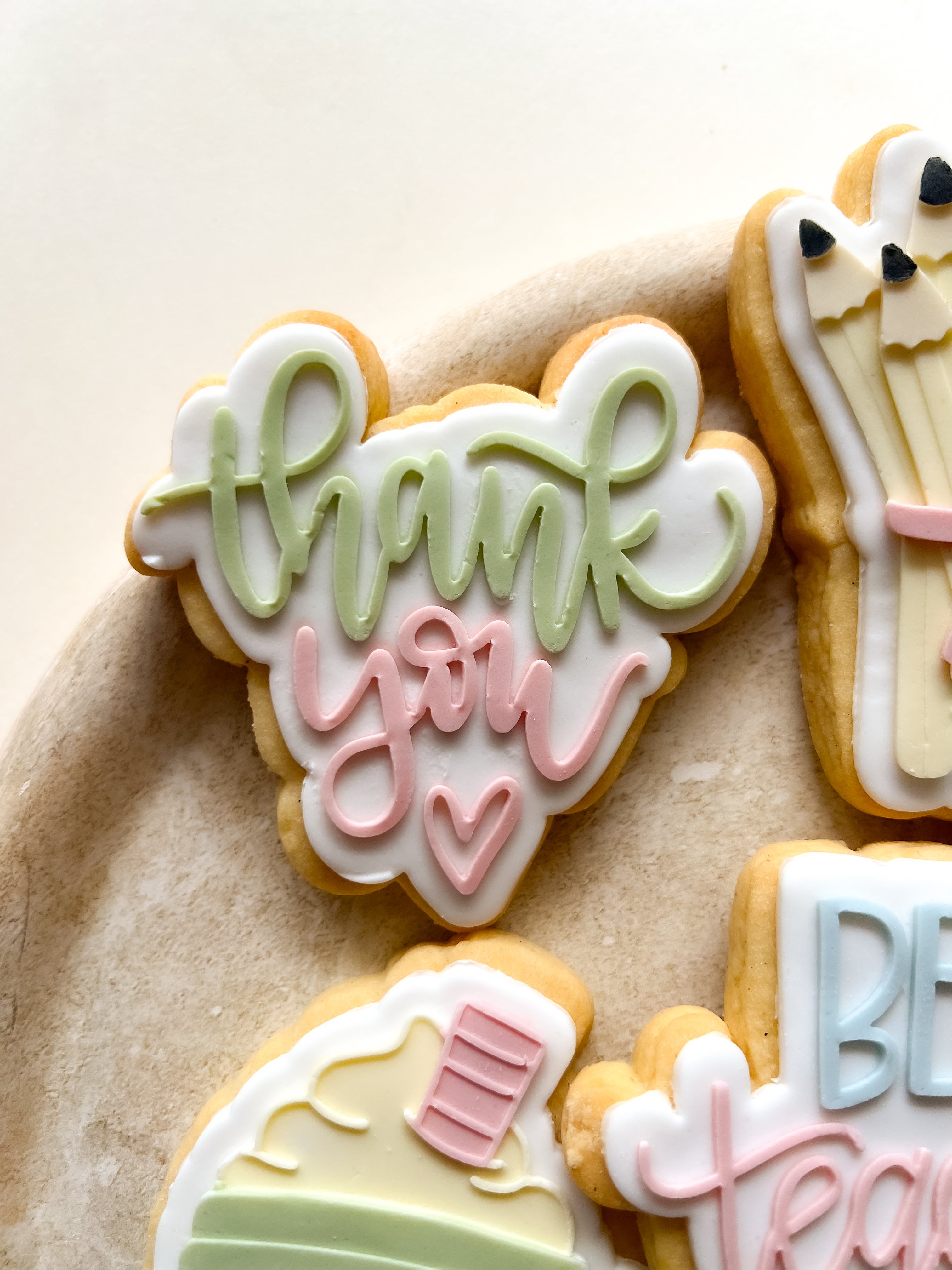 Debosser and cutter. Approximately 4x8.5cm. Design has been adjusted to widen part on the “T”.